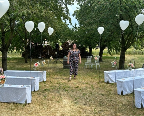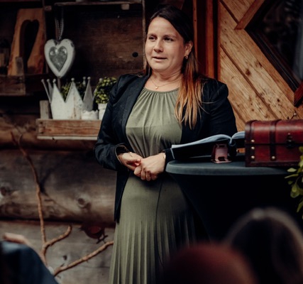 Die Vorgespräche waren immer sehr sympathisch, lustig und wir haben uns rundum wohlgefühlt. Ihr ruhiges Wesen hat vor der Trauung dem ein oder anderen die Nervosität genommen und für gute Stimmung gesorgt. Für unsere Traurede hat sie die richtigen Worte gewählt und wir waren gerührt wie sie es vorgetragen hat und ihre persönliche Note mit eingebracht hat.