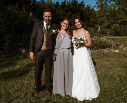 „Vor knapp einer Woche hat Magdalena unsere freie Trauung abgehalten und uns an unserem großen Tag begleitet. Es war wirklich wundervoll mit ihr! Die Zusammenarbeit mit Magdalena ist unkompliziert, freundlich und man fühlt sich einfach nur wohl; nicht nur bei ihrem Internetauftritt sondern auch bei dem Vorgespräch wird schnell klar; ihre höchste Priorität ist, dass die Trauung FÜR UNS ist und zu uns passt. Mit ihrer Traurede hat sie uns als eigenständige Personen und als Paar perfekt widergespiegelt und alles mit sehr viel Herz und Humor für unsere Gäste zusammengebracht. Nicht nur wir, sondern auch unsere Gäste waren begeistert und wir haben viel positives Feedback erhalten! Wir sind rundum glücklich und zufrieden mit unserer Wahl und darüber, dass alles rundum perfekt für uns war.“